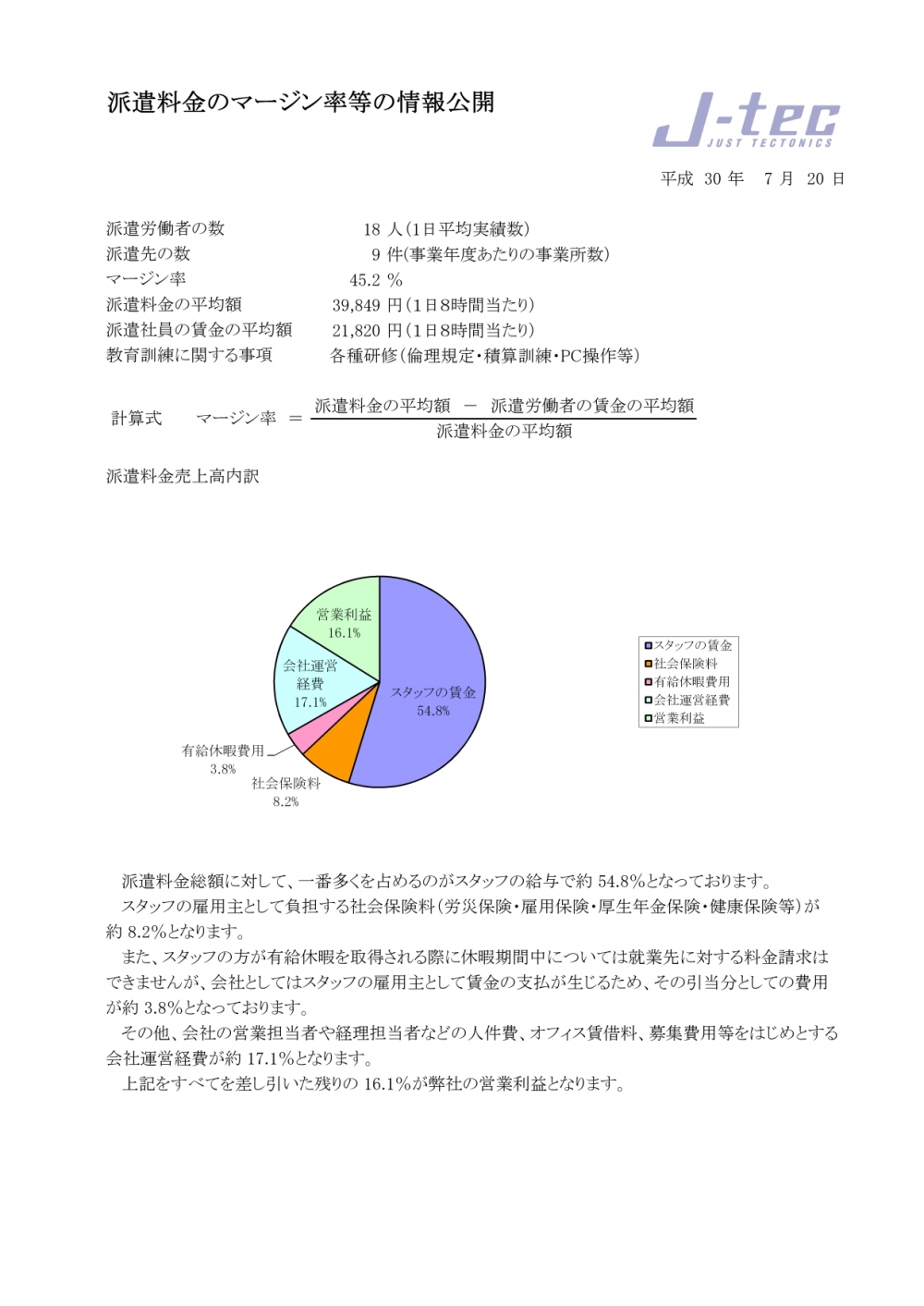 派遣料金のマージン率の情報を公開しました。