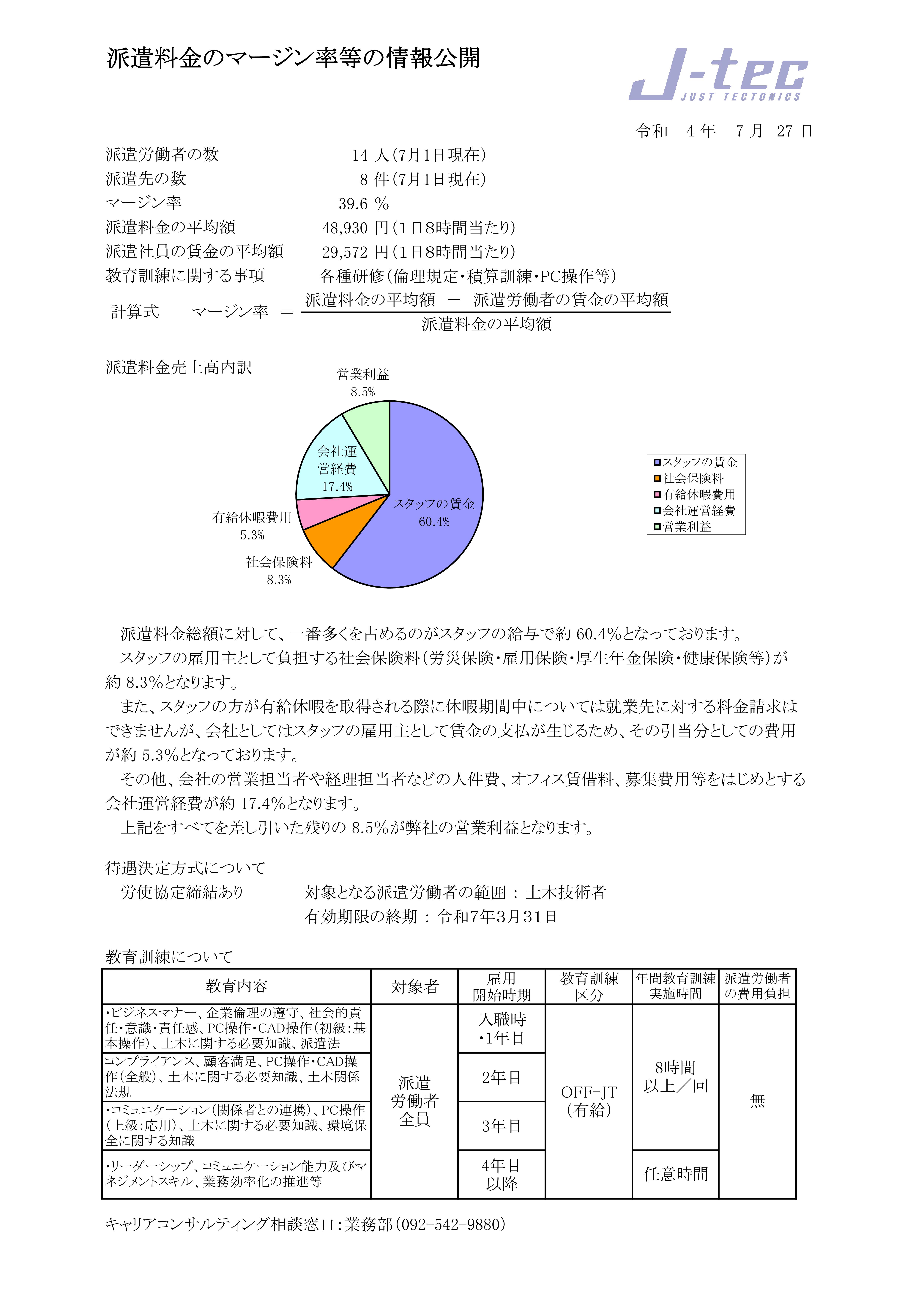 派遣料金のマージン率の情報を公開しました。
